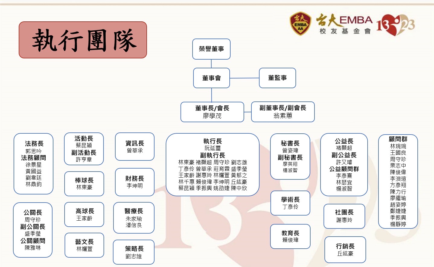 擔任執行長的這段時間,我最大的感受是感恩。感謝學茂董事長的信任,感謝董監事、核心幹部的並肩作戰,也感謝每一位願意走出來、站出來的學長姊,讓基金會始終充滿溫度與行動力。